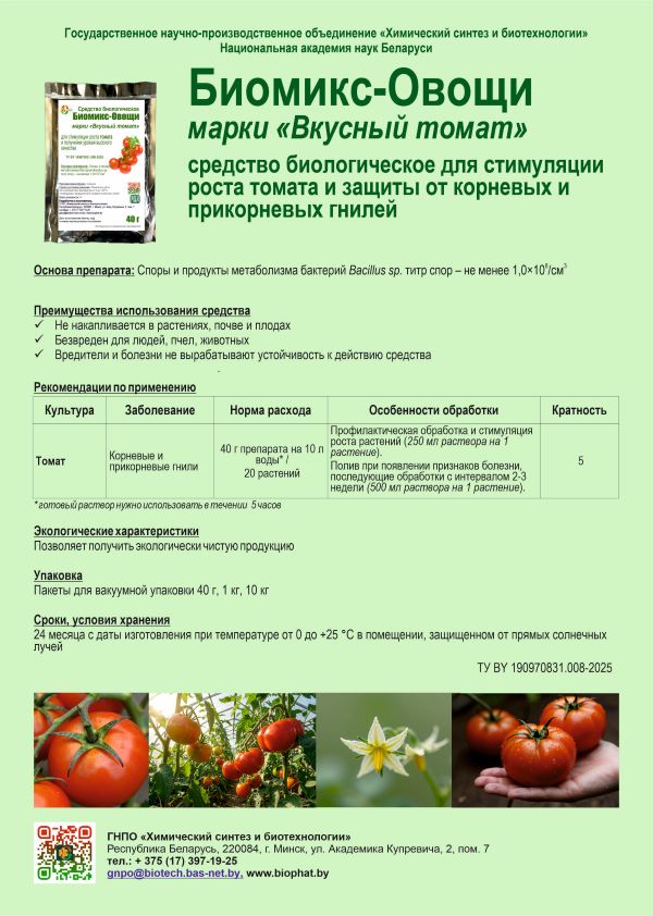 Листовку по применению средства биологического Биомикс-Овощи марки «Вкусный томат» можно скачать здесь.