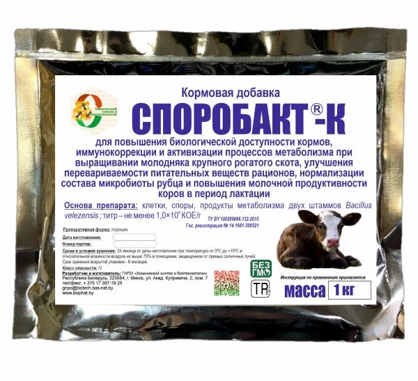 Экологические характеристики: кормовая добавка является непатогенной и безвредной для животных, не обладает токсичностью, аллергенностью и токсигенными свойствами. Продукцию животноводства после применения Споробакта®-К используют без ограничений.